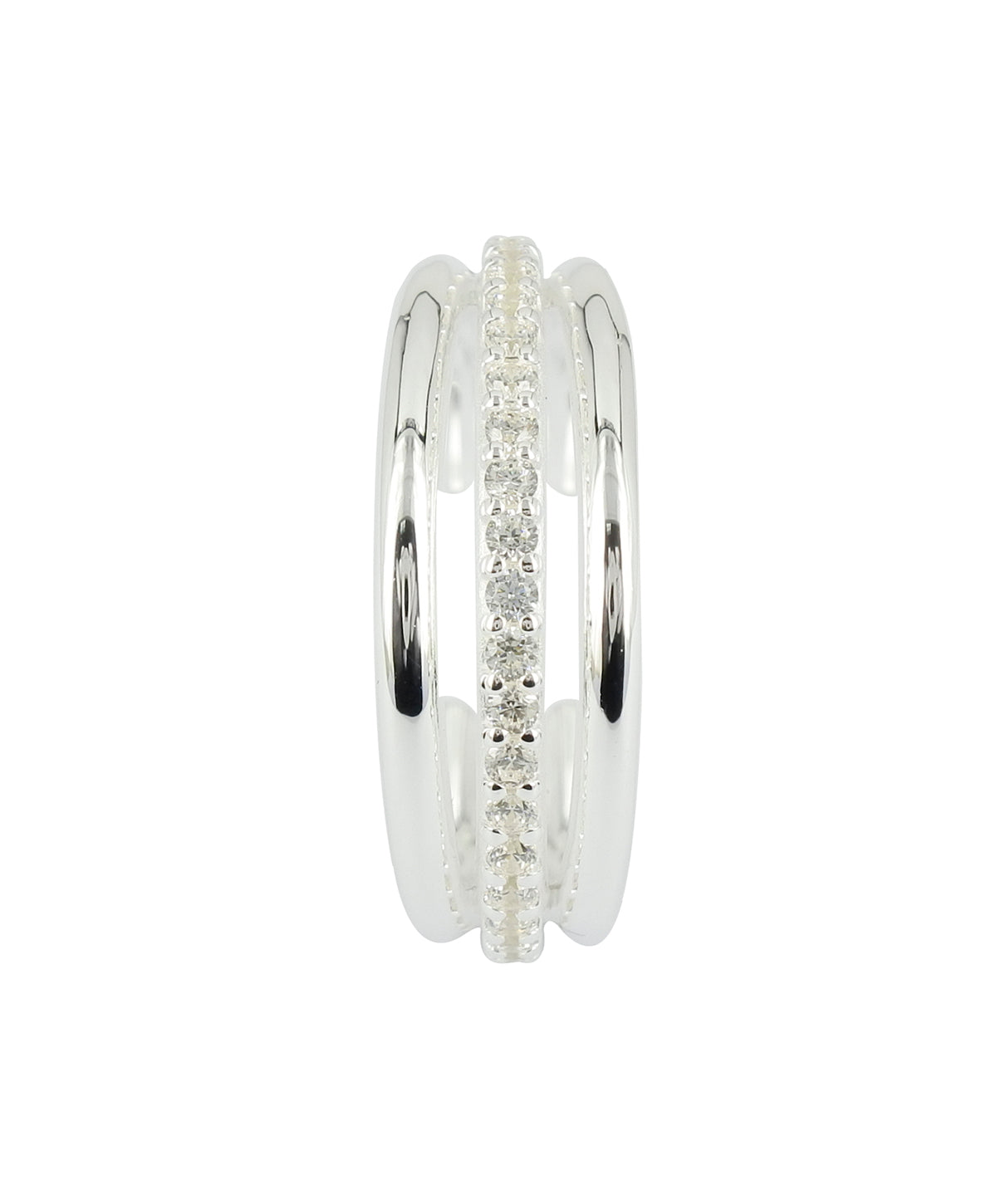 Cool ear cuff with sparkling white zirconia. 925 Silver. Polished surface.